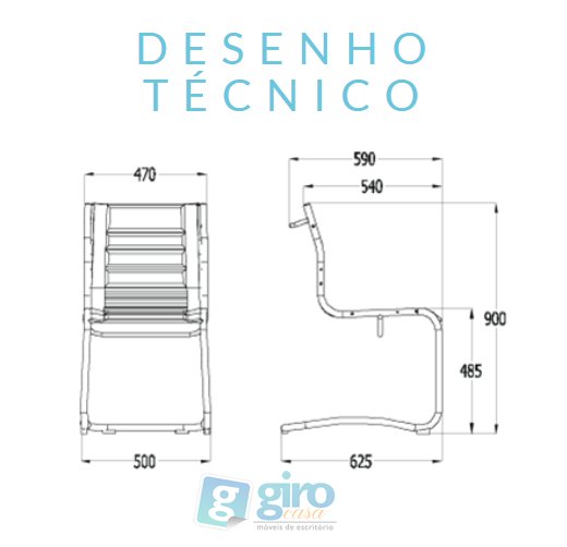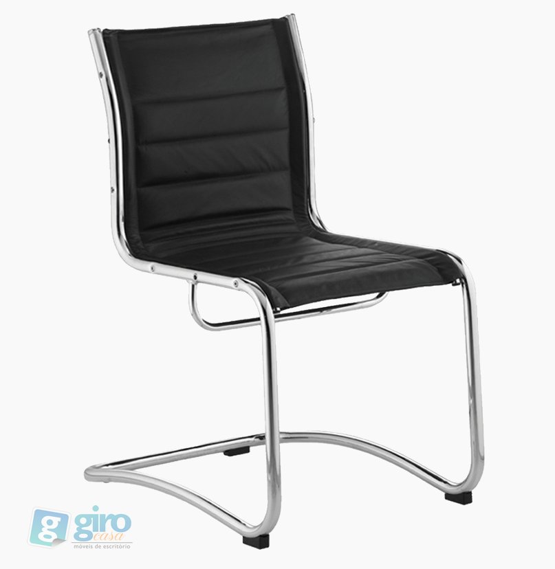 Descrição de "Cadeira fixa cantilever, couro natural preto - SKYLUX"